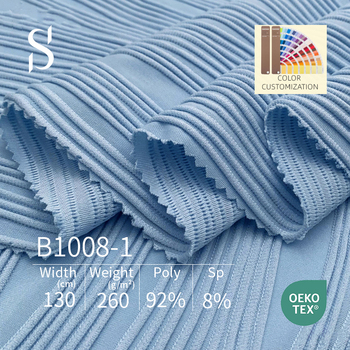 8% ספנדקס בד רצועת אריגה אוקיינוס מתיחה לשמלה אקארד מכירה חמה 92% בגדי פוליאסטר טרי בד ערב סרוג
